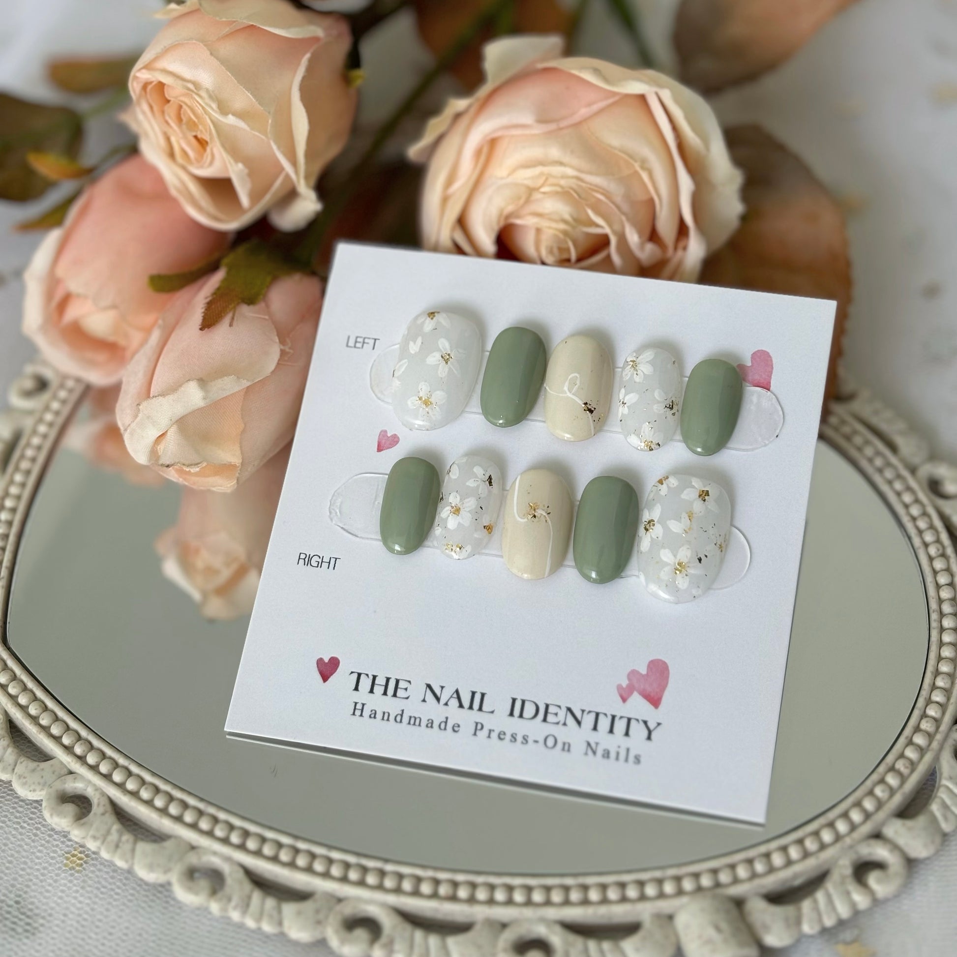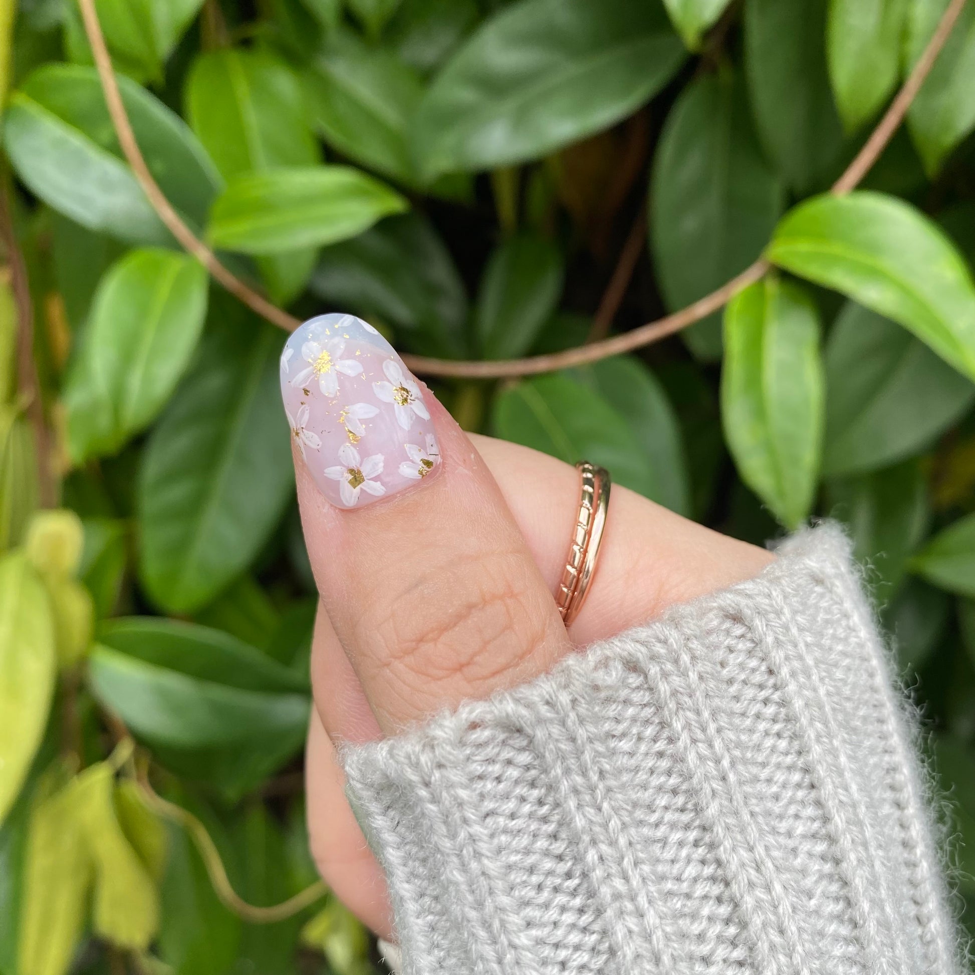 1 set of nails, Mini file, Mini buffer, Cuticle pusher, 2 alcohol wipes, 24 adhesive tabs