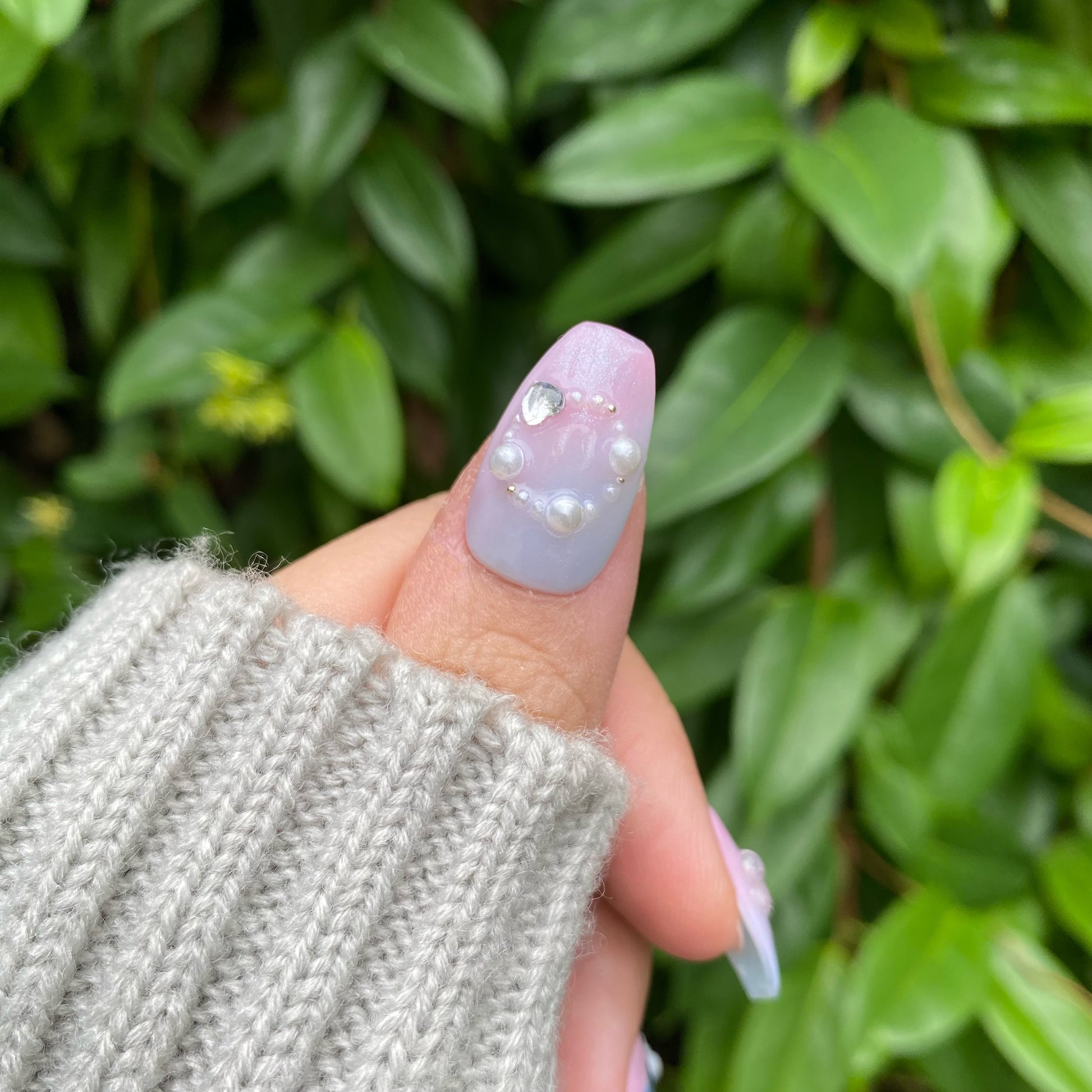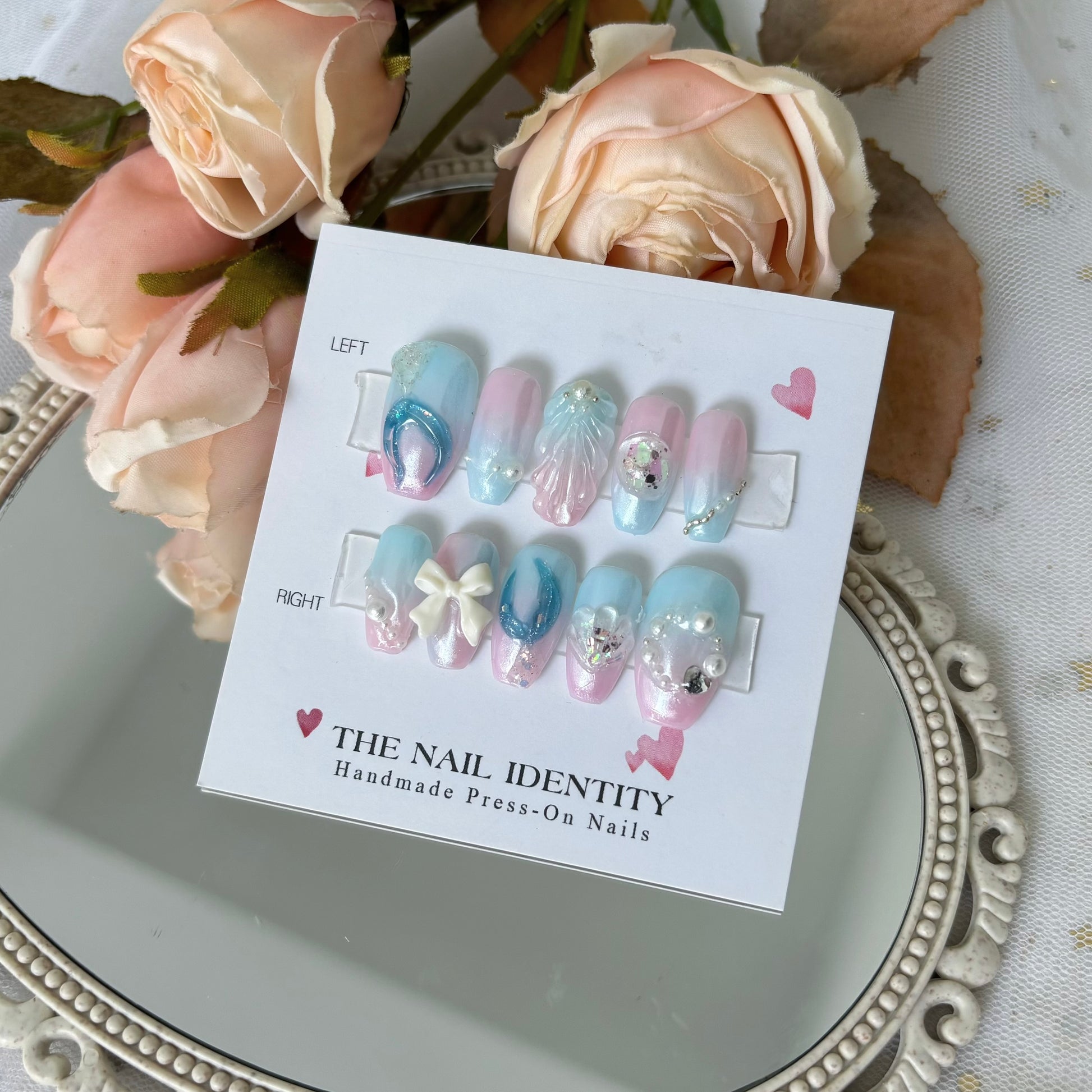 1 set of nails, Mini file, Mini buffer, Cuticle pusher, 2 alcohol wipes, 24 adhesive tabs
