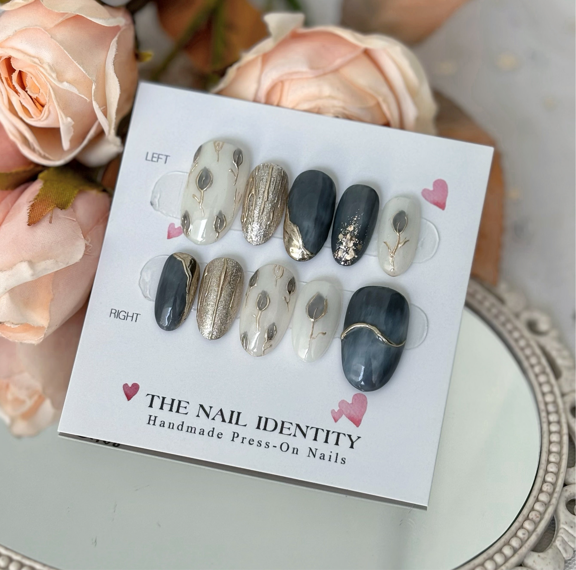 1 set of nails, Mini file, Mini buffer, Cuticle pusher, 2 alcohol wipes, 24 adhesive tabs